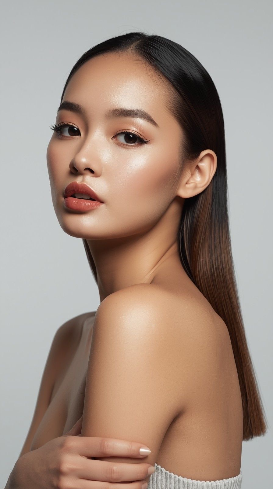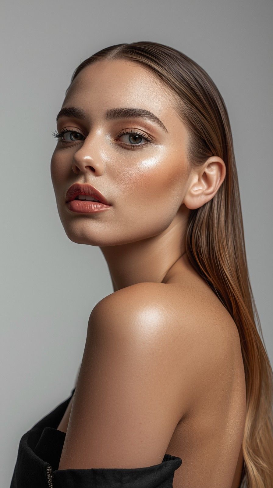 Los acabados húmedos y glossy no solo aportan un brillo impactante, sino que crean un efecto de piel fresca y moderna que refleja la luz de manera estratégica. Estos looks funcionan especialmente en fotografía editorial y pasarela, donde la luz resalta cada detalle.