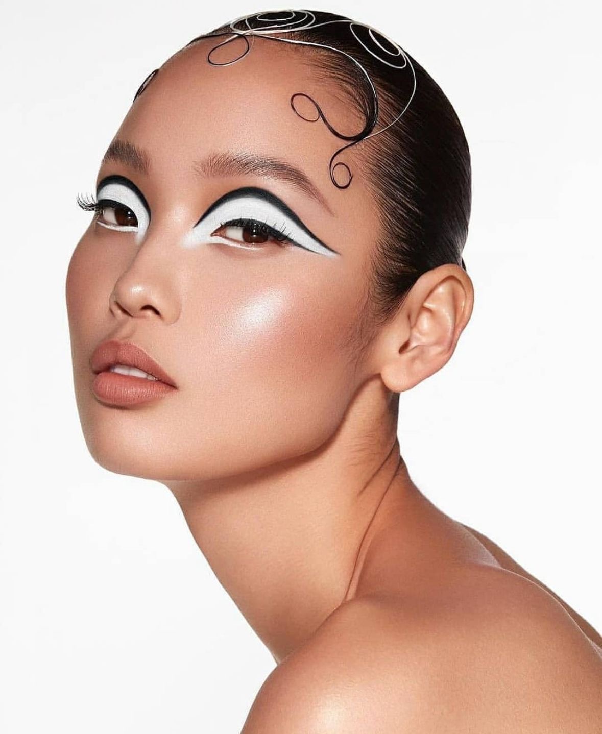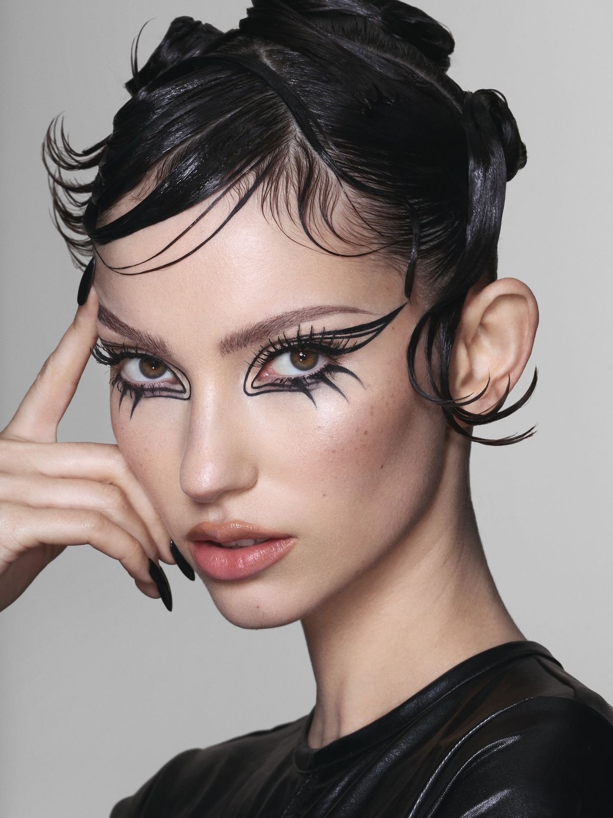 Las estructuras casi escultóricas incluyen técnicas de maquillaje que juegan con volumen, relieve y formas geométricas. Líneas precisas, aplicaciones 3D y capas de productos permiten crear looks que desafían la percepción clásica de un maquillaje plano, agregando un elemento dramático y conceptual.