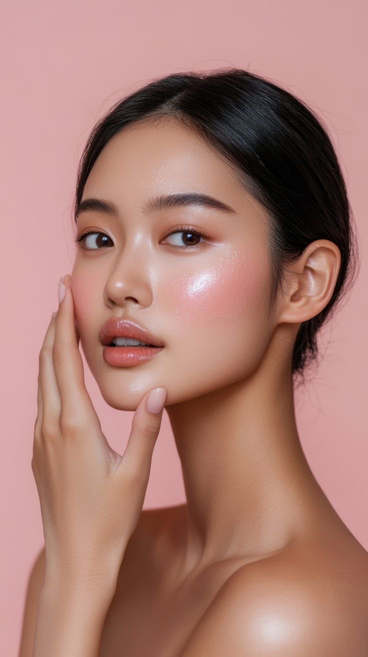 Los acabados ultra luminosos son el sello distintivo. La famosa glass skin coreana no busca cobertura pesada, sino una piel hidratada, jugosa y con brillo natural desde dentro. Esto se logra a través de capas ligeras, cushions, esencias y primers hidratantes que preparan la piel antes de aplicar cualquier base.