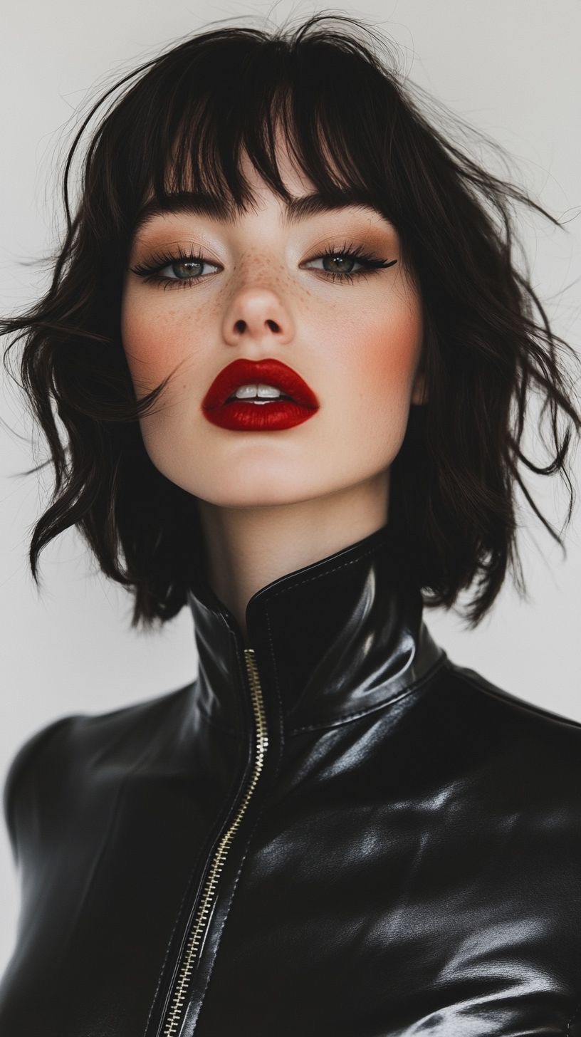 Características del look: Smokey eyes en negro o gris, delineado difuminado, piel natural y labios nude o en tonos vino. Este maquillaje transmite una estética rebelde y sofisticada al mismo tiempo.