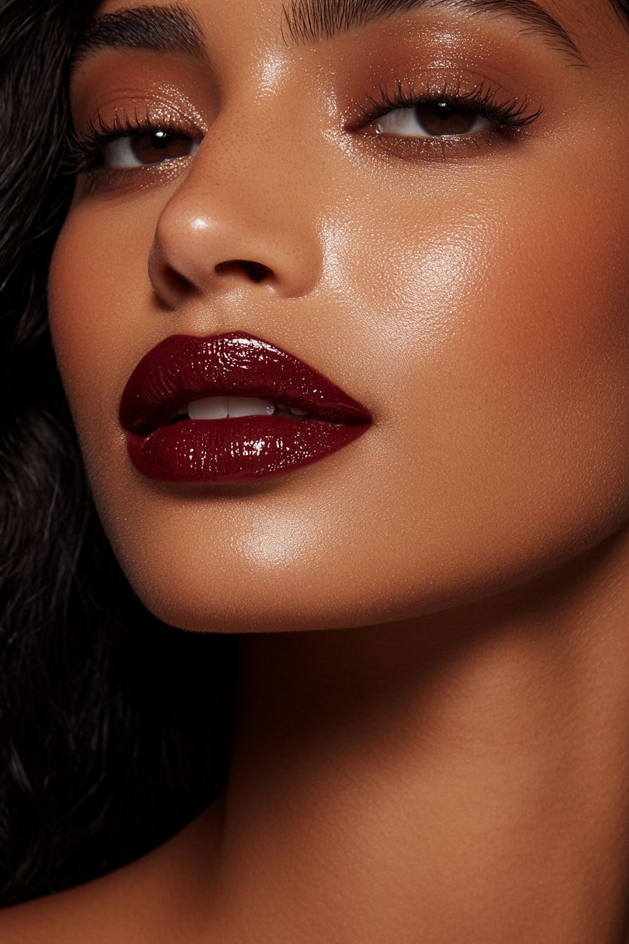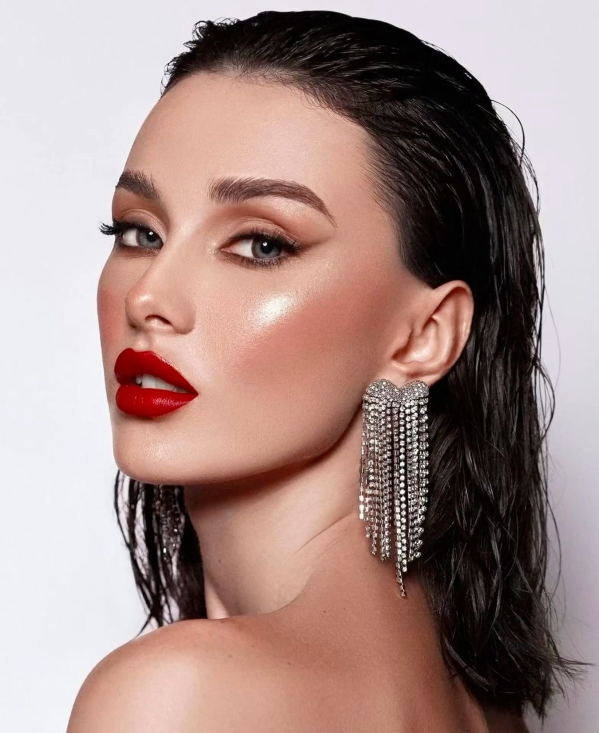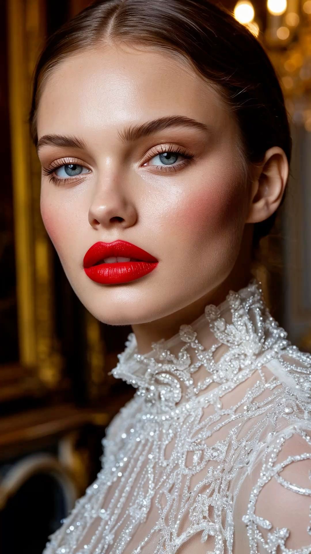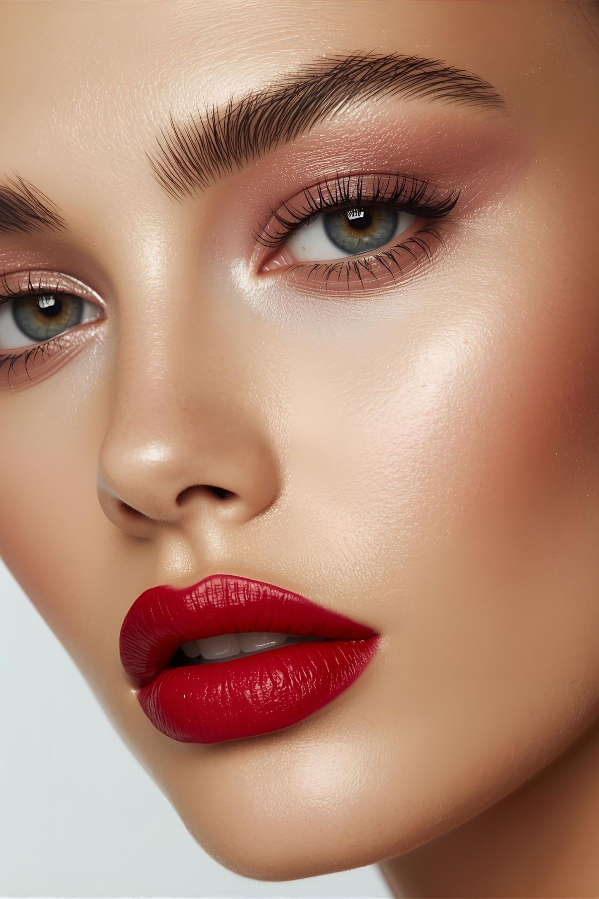 Es un clásico que nunca falla. Proyecta seguridad, elegancia y presencia. Funciona especialmente bien en eventos nocturnos y maquillajes donde los ojos se mantienen más limpios. Bien trabajado, el rojo no endurece el rostro, lo potencia.