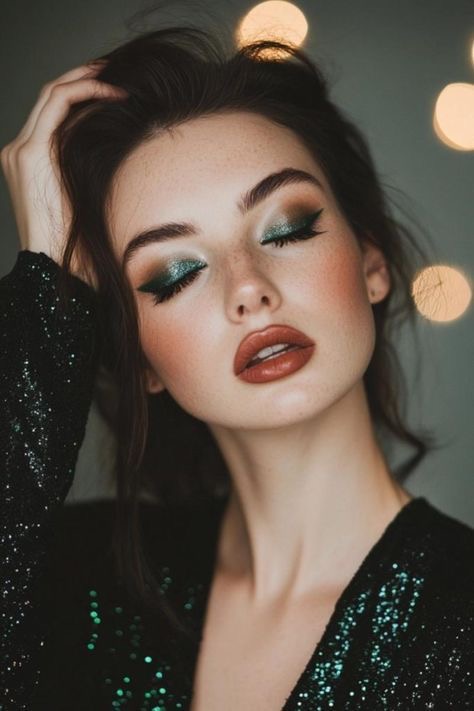 Quieres salir de lo típico? El verde esmeralda y el verde oliva son tonos que elevan cualquier maquillaje de ojos, aportando frescura y sofisticación sin perder la vibra navideña.