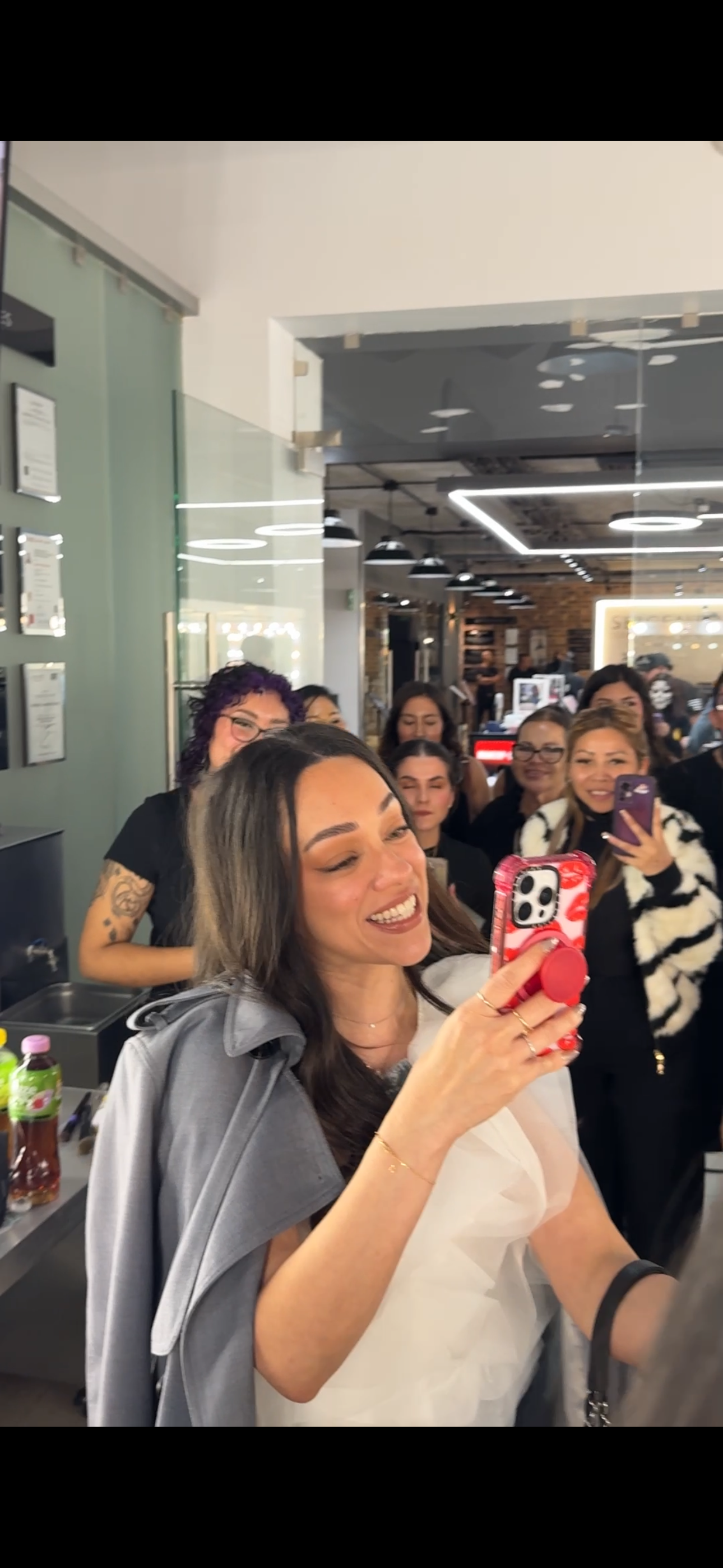 Nadie la esperaba, y de pronto, ahí estaba ella: sonriente, sencilla, saludando como si llegara a casa. Muchas se quedaron en shock —literalmente—. Algunas crecieron viendo sus videos; otras incluso dieron sus primeros pasos en el maquillaje gracias a ella. Verla frente a frente fue simplemente increíble.
